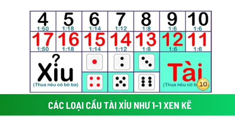 Khi đã hiểu bản chất của “cầu” trong Tài Xỉu, mẹo bắt cầu tài xỉu là nhận diện được dạng cầu đang chạy để chọn cách đánh phù hợp. Dưới đây là những kiểu cầu thường gặp nhất cùng dấu hiệu giúp bạn phát hiện chúng nhanh chóng.